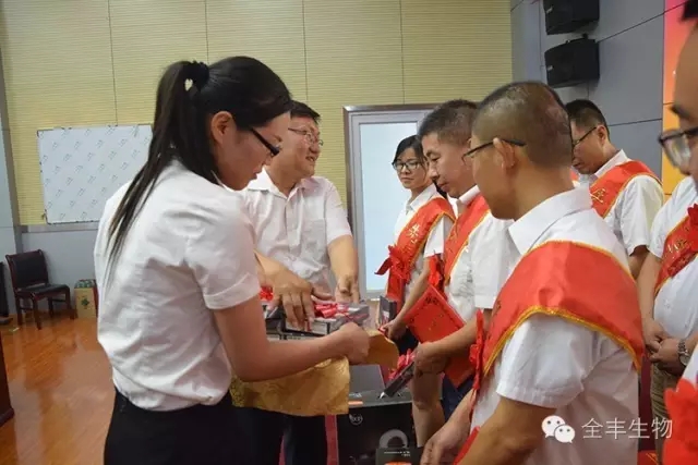 全豐集團副總經(jīng)理、研發(fā)中心主任徐雪松向模范頒獎,表示祝賀